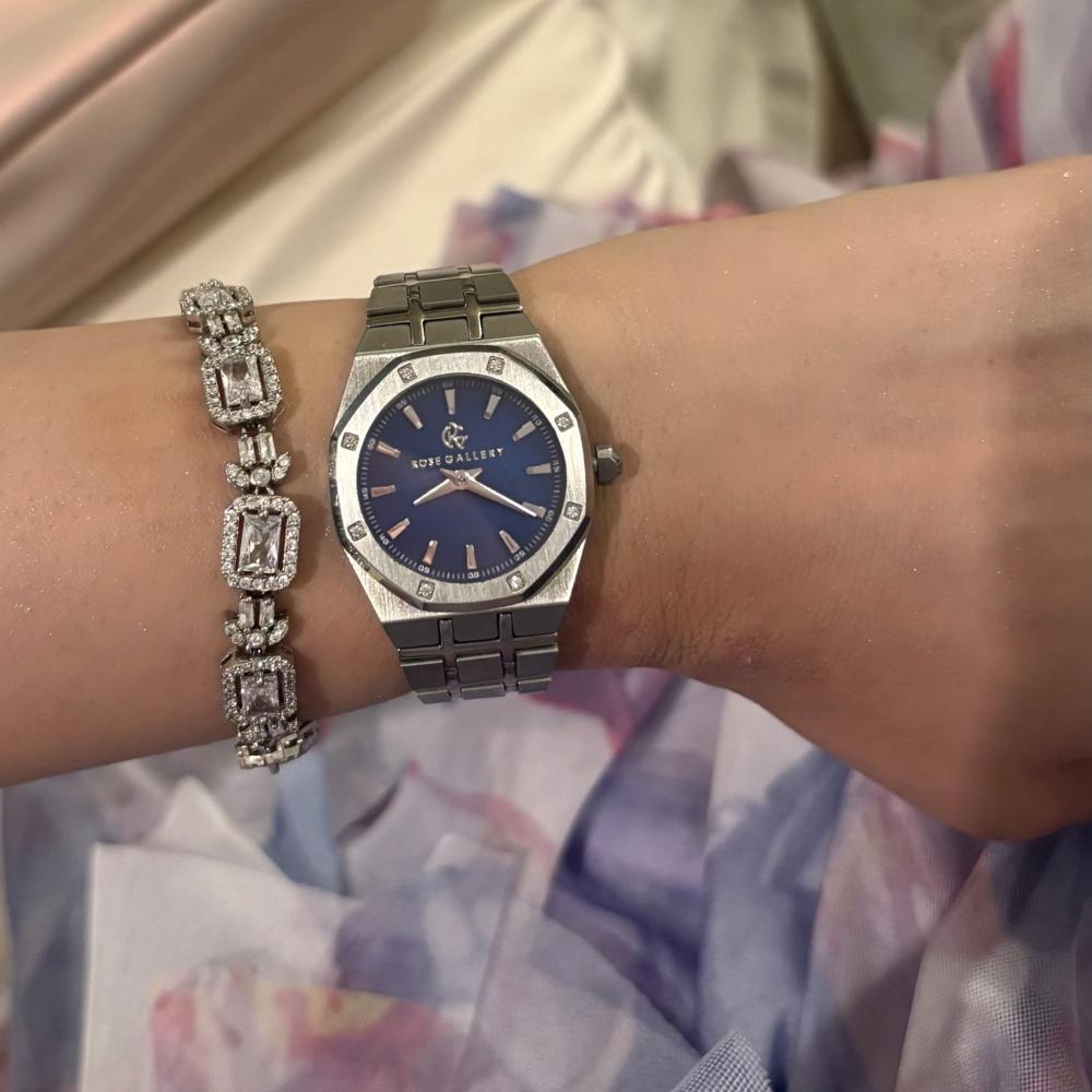 ساعة كاريزما النسائية الفاخرة استيل فضي ازرق