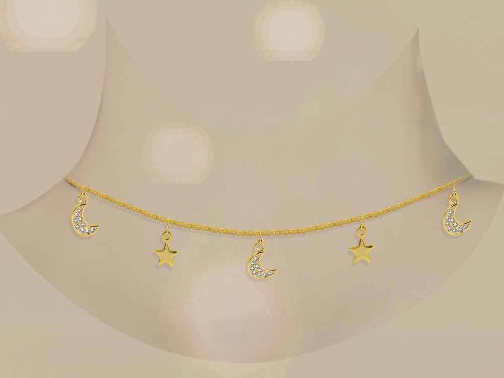 سلسال شوكر زركون هلال و نجمة مطلي منوع