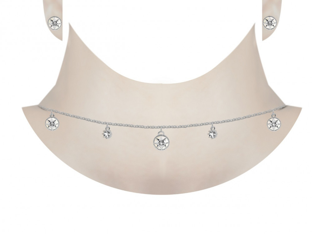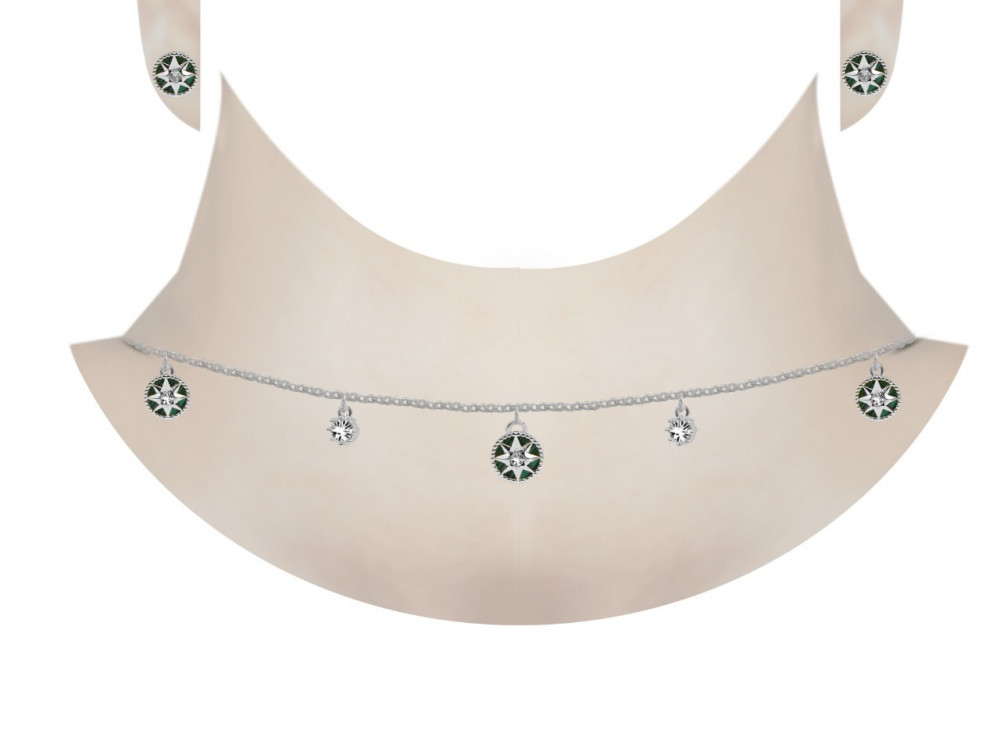 طقم عقد شوكر زركون وردة البوصلة فضي منوع